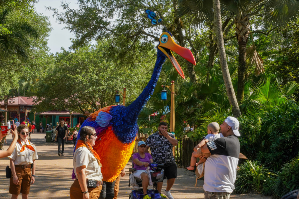 So look, this one isn’t an attraction, necessarily. But, nonetheless, it’s so much fun. Anybody who is a fan of the movie Up!, or even if you’ve never seen it; there’s nothing like coming across a giant 10-foot multi-colored bird named Kevin. Kevin is a female bird based on the Himalayan Monal pheasant. She debuted as a walkaround character in 2018 during the Pixar Fest event as a new addition to the Pixar Play Parade, but then a Russell-free version debuted in Animal Kingdom in 2019. Not an official “character meet,” she doesn’t stay in one place for long, nor does she pose for pictures, but you are allowed to take a selfie with her and capture her as she walks by.