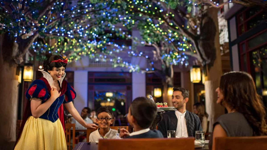 Story Book Dining at Artist Point at Disney’s Wilderness Lodge – Featuring Snow White, Dopey, and Grumpy every evening, enjoy in American fare. And, if you dare, you can even meet the Evil Queen and pose for a photo with her! This is a rare one as you don’t get to eat with the villains often. This is a great place to check out as it’s a short boat ride away from Magic Kingdom. Rating: 10/10.