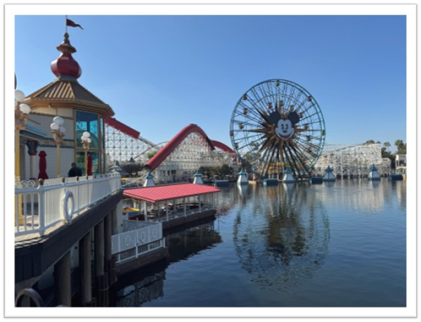 The park offers thrilling attractions like Radiator Springs Racers and Guardians of the Galaxy – Mission: BREAKOUT!, along with unique dining and entertainment, providing a distinct West Coast adventure.