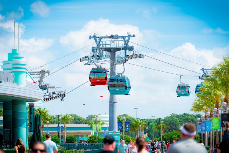Disney Transportation: Disney transportation is a ride in and of itself. In fact, you can get around property by bus, by Monorail, by Skyliner (seen to the left) or by boat. In fact, it’s a fun challenge to try to use all four forms of Disney transportation in one day!